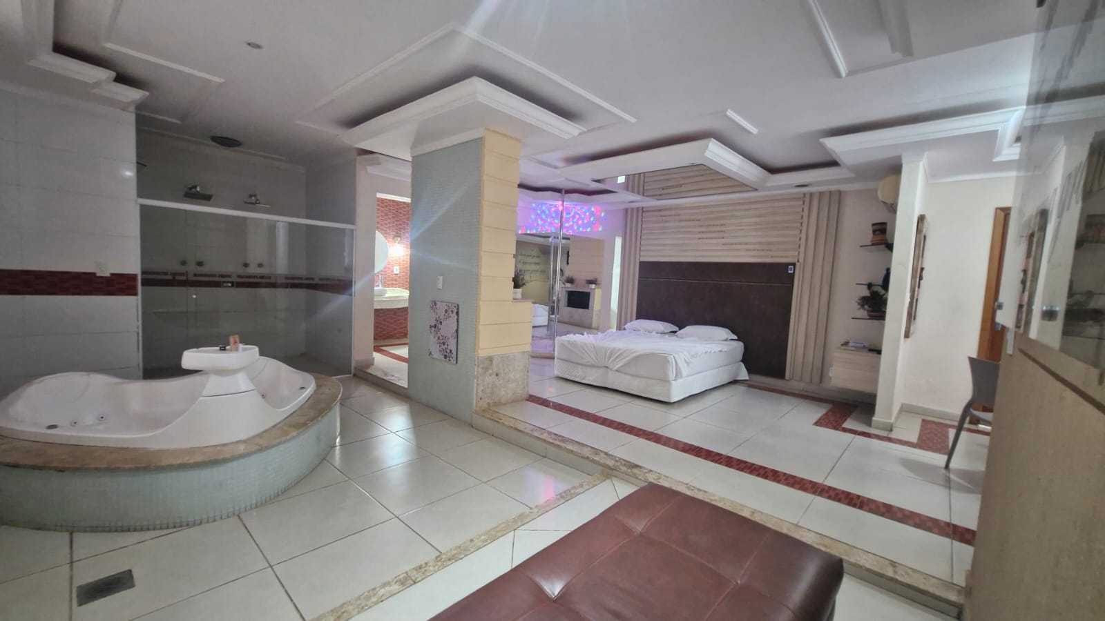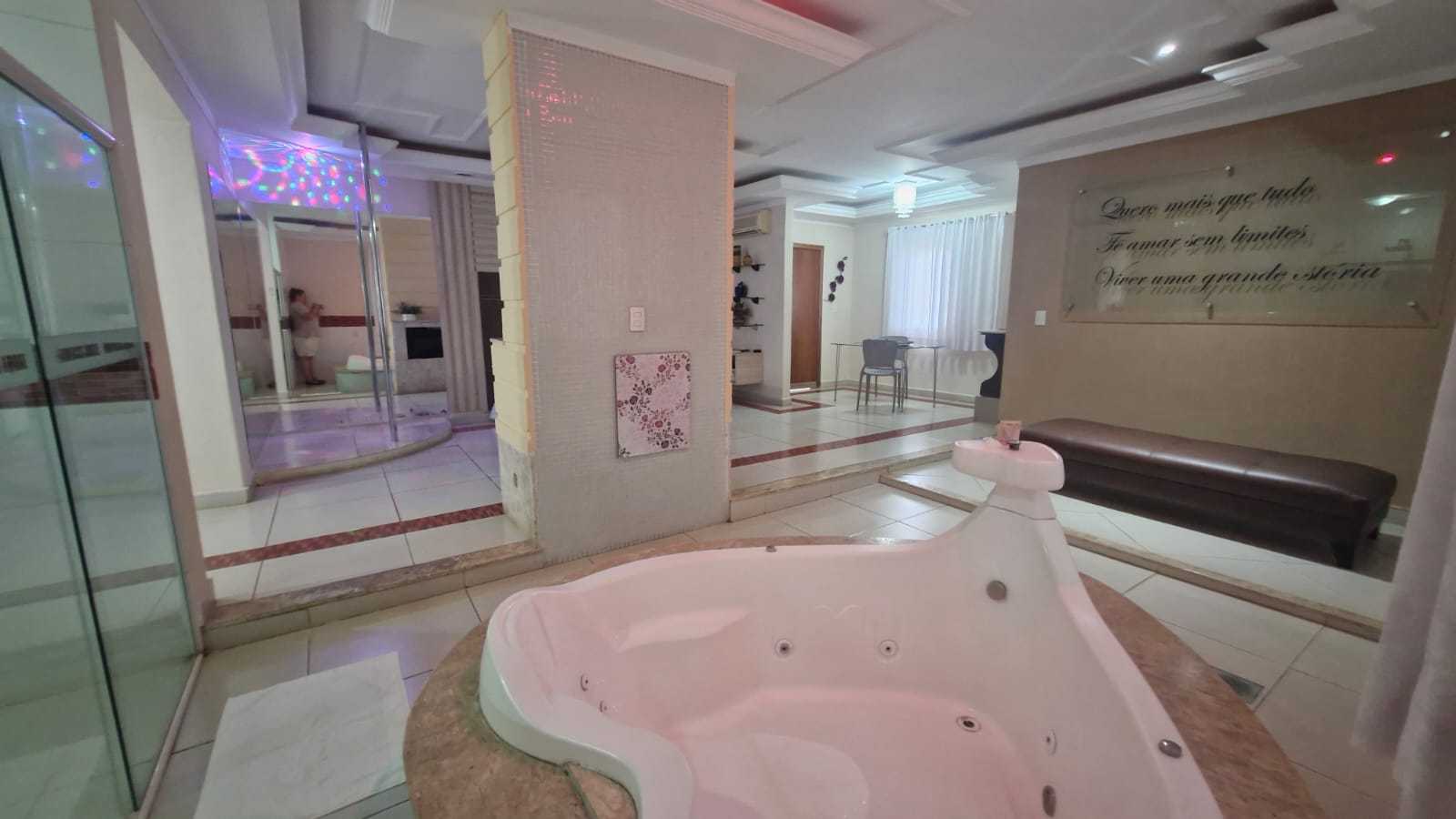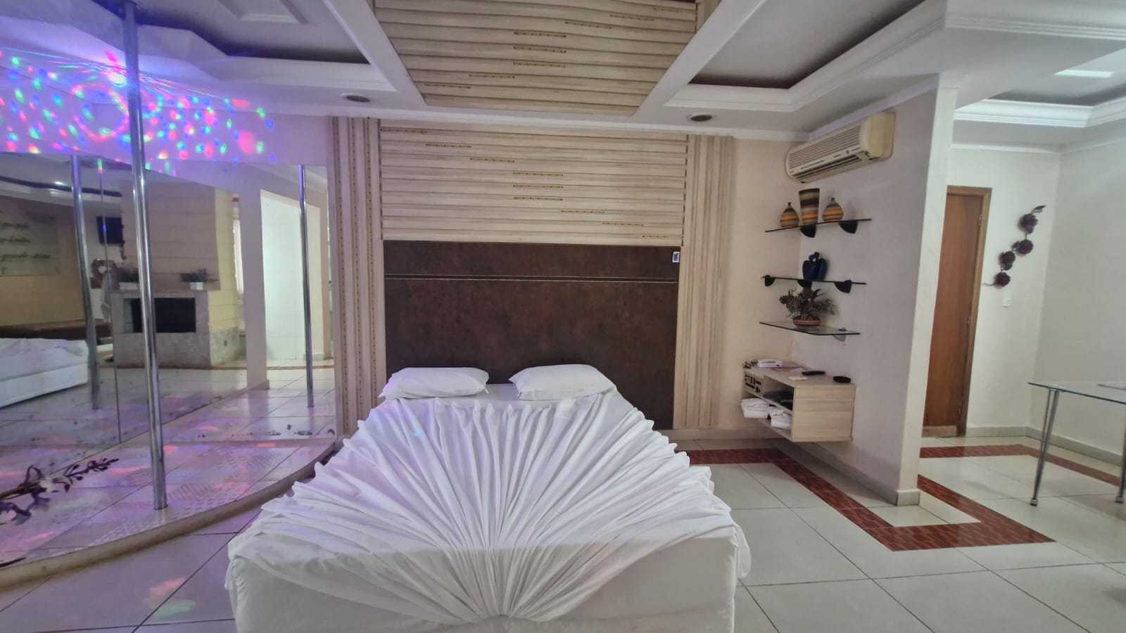 TV 42´, pista de dança, lareira, HIDRO DUPLA em formato de coração, ducha dupla, sauna, sala jantar, frigobar, cama box, ar split, rádio, dvd, canal erótico.