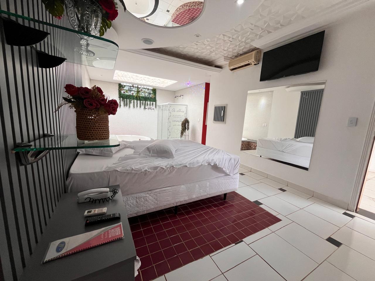 TV LCD 42′, teto solar móvel, lareira, frigobar, hidro dupla, ducha dupla, cama king, ar split.